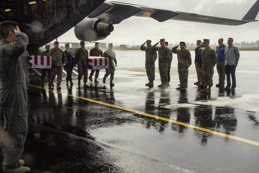 “An honorable carry is a ceremony that pays tribute to the Unknown service members who are returning to American soil for the first time since their conflict-related death” – DPAA.
